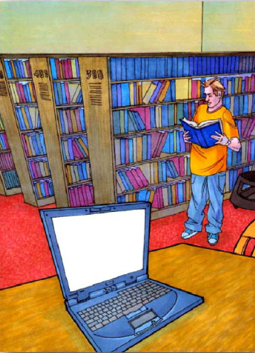 AN ENTIRE LIBRARY AT YOUR FINGERTIPS Dell continues to be a driving force in the PC market with the innovative idea of making computers to order. This catalog issue, aimed at the student market, speaks directly to their need for the perfect study aid. Literally hundreds of marker concepts were supplied for this client over a four year period. Keeping the style simple and consistent was the key in maintaining such a long term relationship.