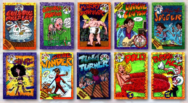 NO ROCK STAR IS SAFE This irreverent set of trading cards produced for PressPass spoofs every pop star in the tabloids. From Elvis to Stevie, Cher to Dolly — we’d like to apologize to all sixty of them, but that would take too much time. Ink and markers made this set of almost sixty lively cards quick, spontaneous and fun to produce.