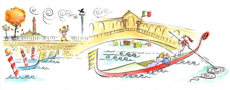 AUTUMN AMORE When Essilor decided it was time to take a vacation and celebrate their success with their top sales people, romantic Venice was the only choice. A free-styled watercolor illustration for Essilor’s brochure catches all the fun and atmosphere, sights and sounds of this exotic location.