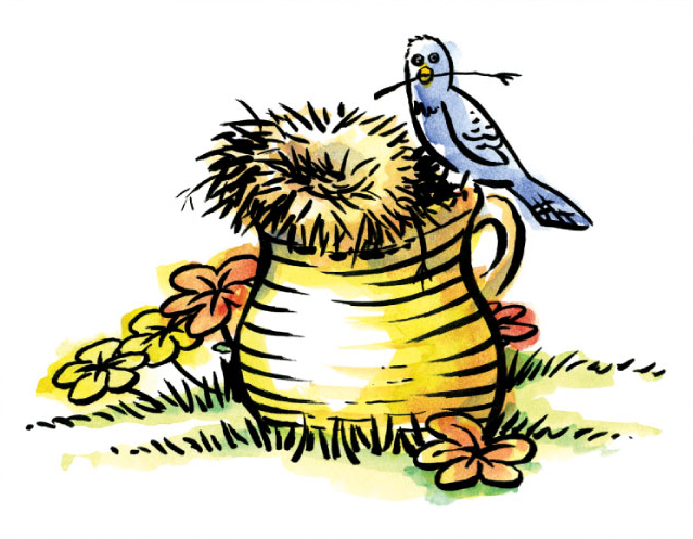 HOMES IN UNEXPECTED PLACES This simple illustration for a bi-lingual children’s reader shows what a little girl finds one day in her back yard.